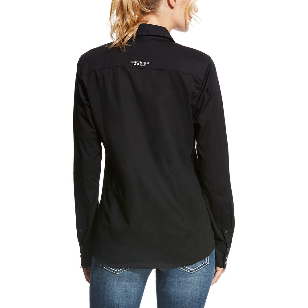This black button down shirt from Ariat Apparel comes in black and is made out of a stretch material for extra comfort.
