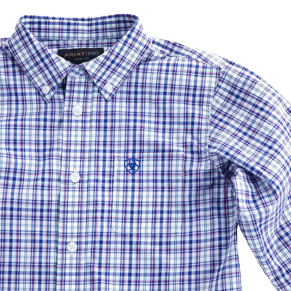 Add some style to your little one’s wardrobe wearing our Purple Plaid buttondown by Ariat.