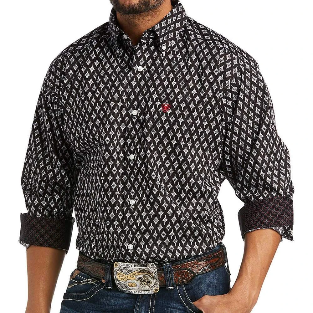 Step out in style wearing our black printed, wrinkle free buttondown by Ariat.