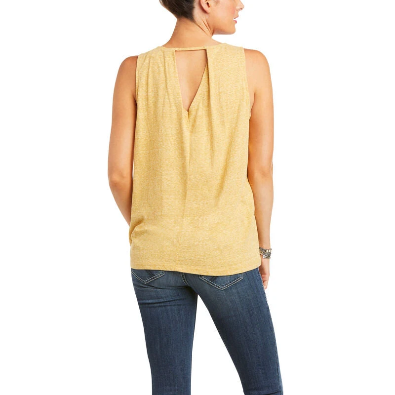 Slub jersey-knit comfort featuring the classic tank silhouette, updated with an open back, draped bodice and whimsical graphic.