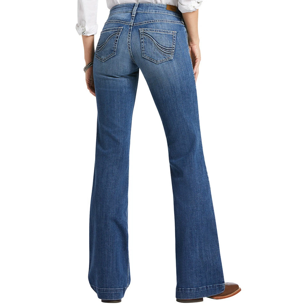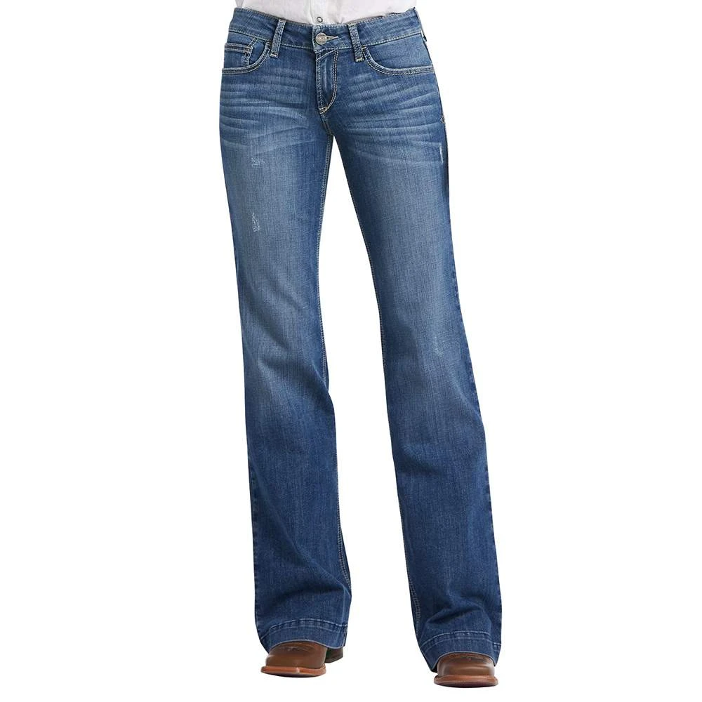 This high-rise trouser is slim-fitting through the hip, thigh, and knee then opens up into the trouser leg we all know and love. Coming in a super-wearable medium wash, it’s a staple pair that goes with button-downs to graphic tees.