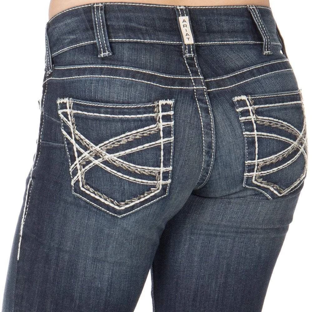 Rider tested and thoughtfully engineered, Ariat Women’s R.E.A.L. Entwined Boot Cut Jeans are a mid-rise, slim fitting style that feature a boot cut leg and performance stretch denim for added comfort that holds its shape and flatters yours. These women’s jeans provide a superior fit with a waistband that won’t gap, a seat that won’t sag and extra length to keep your boots covered in stirrup.